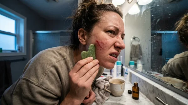 - Gua Sha routines without facial oil cause permanent micro dermal scarring